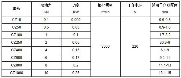 电磁仓壁振动器技术参数: