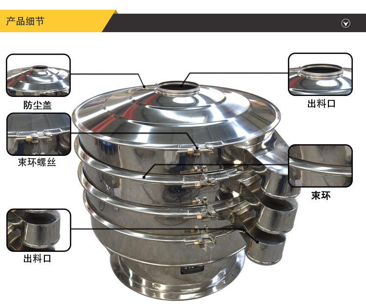 户称呼为圆形筛,与物料接触部分为304不锈钢材质,底座为碳钢材质,普通型的通